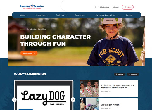 The Heart of America Council serves scouts, parents and adult leaders in eastern Kansas and western Missouri with the Boy Scout, Cub Scout, Venturing, Exploring and Learning for Life programs. They required a website which allowed their visitors to easily find their specific program and activity information with ease.